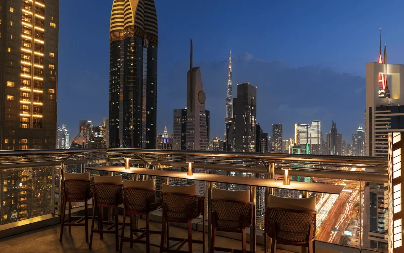 Perched above Sheikh Zayed Road at Four Points by Sheraton, Level 43 Sky Lounge is a classic Dubai rooftop for panoramic skyline views, drinks, and evening dining. It is a good inclusion for readers who want a more accessible rooftop option that still delivers strong city vistas and a lively after-dark vibe.