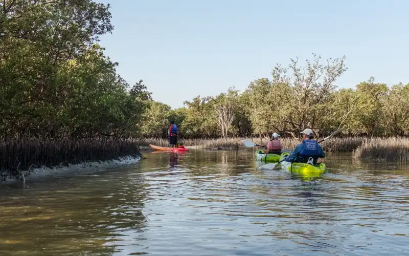Mangroves are an integral part of Abu Dhabi’s ecosystem and have been preserved with deep care. If you want to enjoy these mangroves closely, kayaking is one of the best ways to do so. A kayak is a narrow boat that you have to row with the help of a double-bladed paddle. Due to the size of the vessel, it is perfect to row through the narrow paths of the mangrove. Apart from enjoying the serenity and beauty of the mangroves, you also get to spot the wildlife in the area like unique birds and reptiles. The best places for kayaking in Abu Dhabi are Jubail Mangrove Park and Eastern Mangroves. If you want a different scenery, you can also kayak around Louvre Abu Dhabi, admiring the stunning architecture of this world-renowned museum.